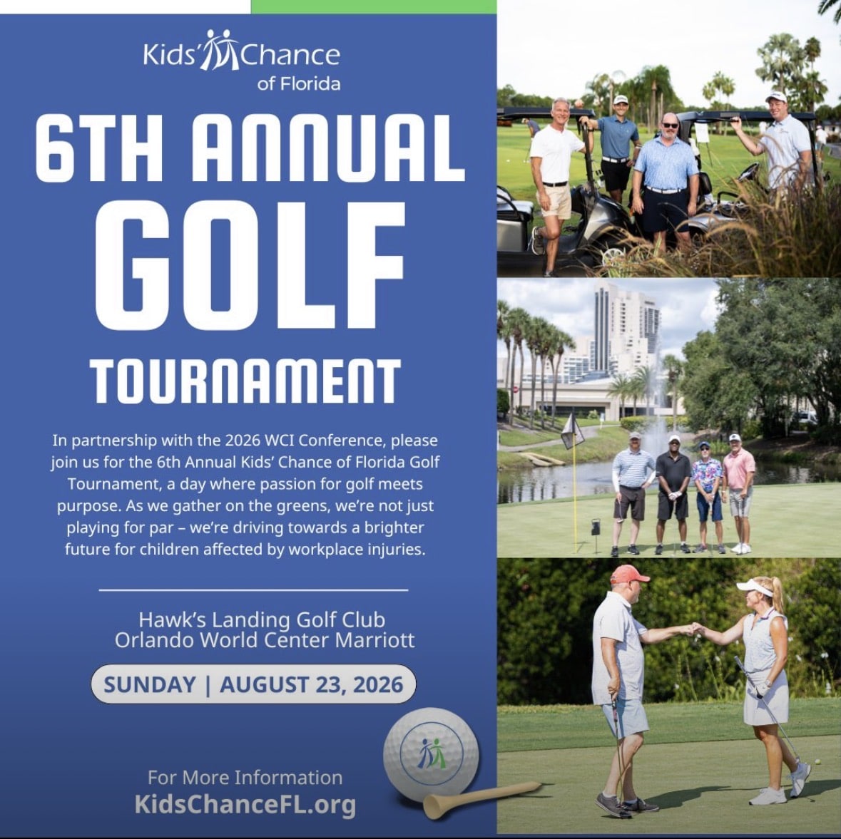 Kids’ Chance of Florida, Inc. will hold its 6th fundraising Golf Tournament as part of the WCI 80th Annual Workers’ Compensation Educational Conference and 37th Safety & Health Conference in Orlando. The Golf Tournament was held on Sunday, August 23, 2025, at the Orlando World Marriott Hawk’s Landing Golf Club.